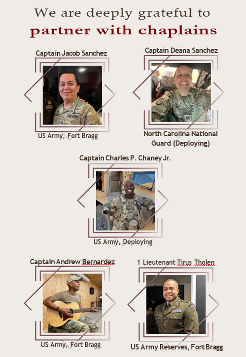 For open doors with commanders and Soldiers—for gospel conversations, worshipgatherings, and moments of trauma care. For them to remain Christlike, courageous, and trusted moral voices under pressure.
